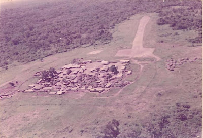 Aquartelamento de Guileje com a população dentro e o aeroporto ao fundo. Foto do enfermeiro Fernando Monteiro CCAÇ 3477